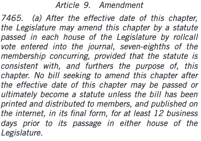 A chilling element of Prop 22, buried in nearly 10 pages of fine print, is that any amendment will require agreement by 7/8 of the legislature.