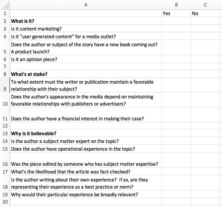 Here’s my draft list — a work in progress — of elements I consider when deciding whether something is worth reading, citing, or recommending.