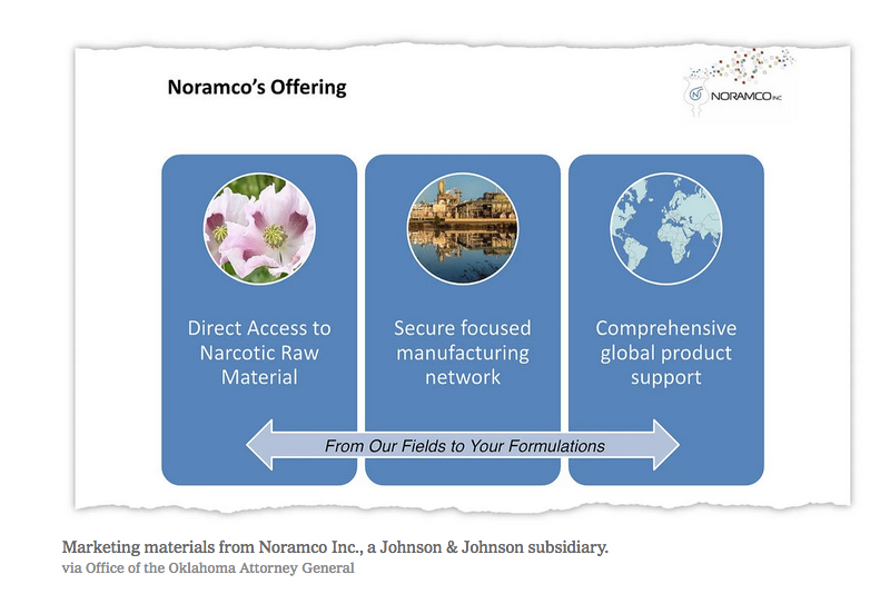 Straight out of a William Gibson novel, for decades J&J owned a Tasmanian poppy farm, where they developed strains of poppies to “increase production of raw materials.”